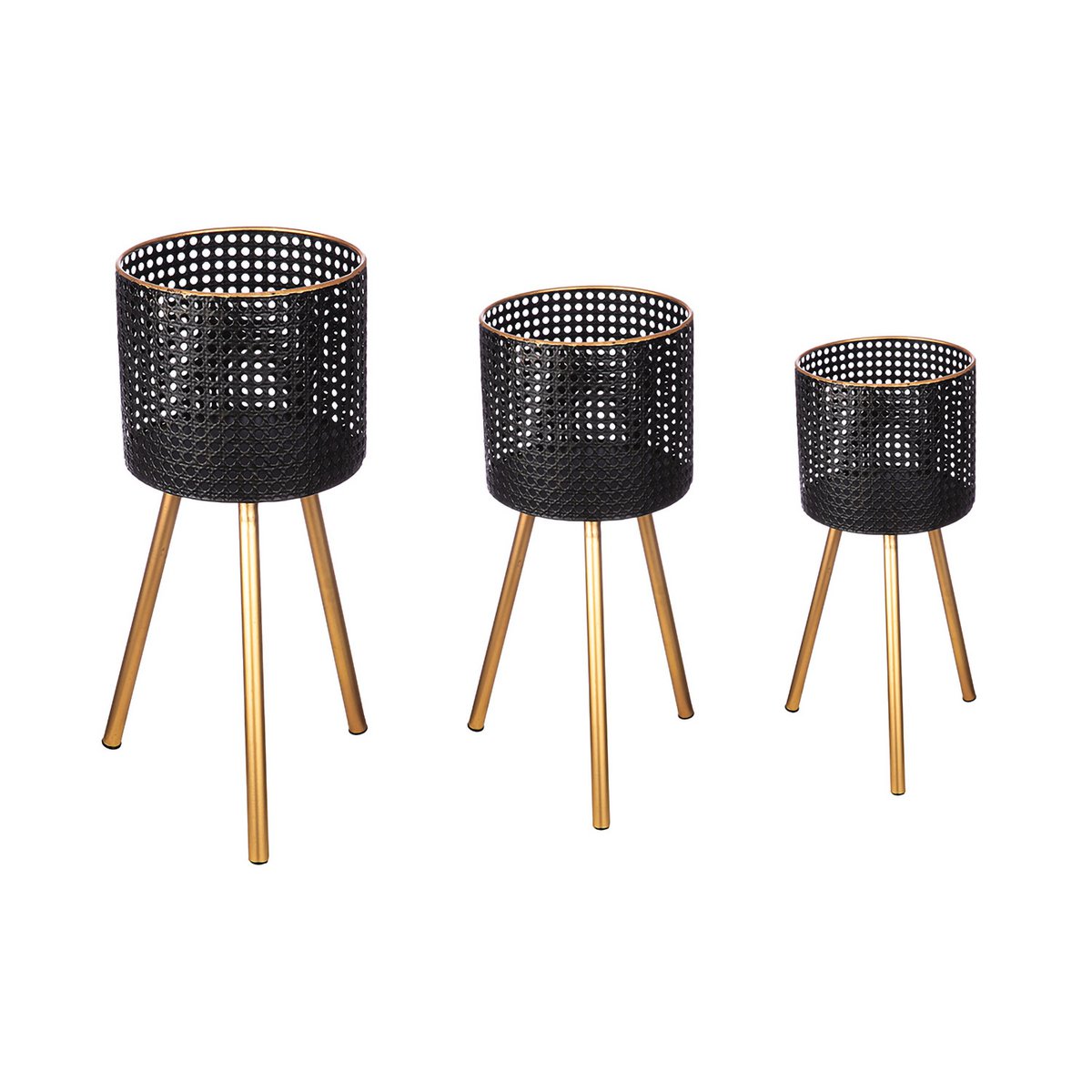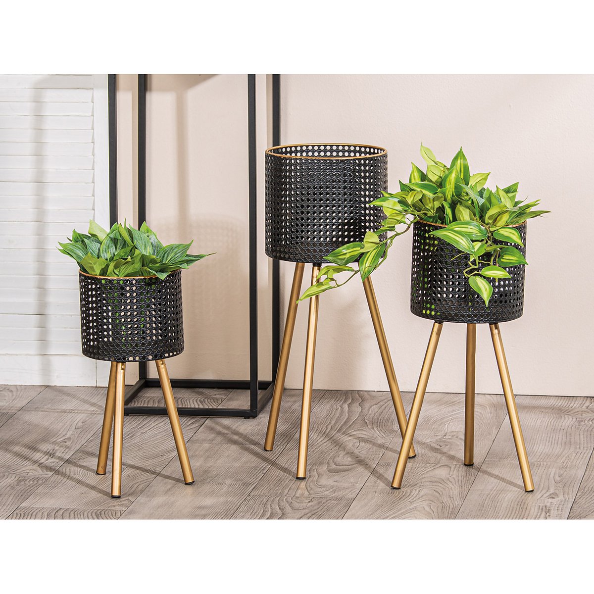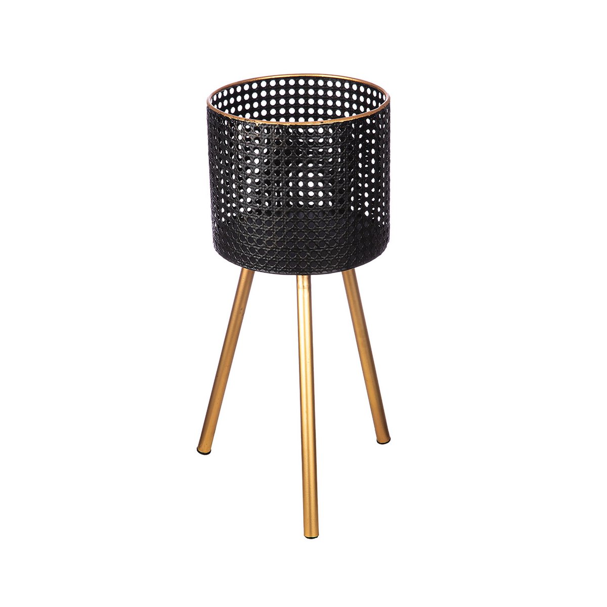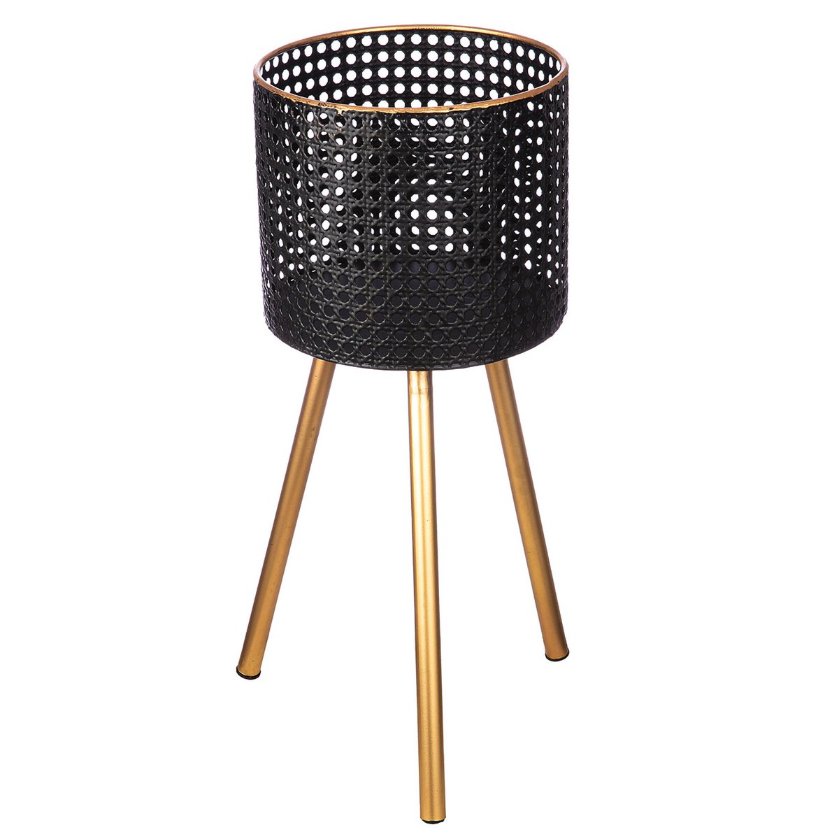 Der schwarz-metallische Übertopf mit goldfarbenen Akzenten besticht durch sein elegantes Design und hochwertige Verarbeitung. Die matte Oberfläche verleiht dem Topf eine edle Optik und macht ihn zu einem stilvollen Accessoire für Ihr Zuhause. Perfekt geeignet für Blumenarrangements oder als dekoratives Element in Ihrem Wohnraum. Mit diesem Übertopf setzen Sie stilvolle Akzente und bringen eine moderne Note in Ihre Einrichtung.