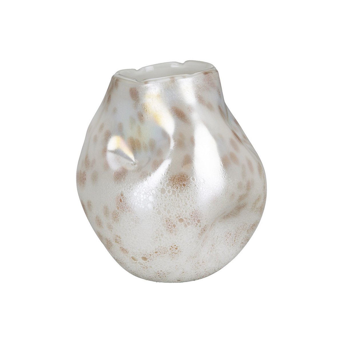 Rundvase Crumple creme und braun schimmernd, mit Oberflächenstruktur, kunstvoll hergestellt aus Glas, H. 21 cm, B 19 cm, T 19 cm