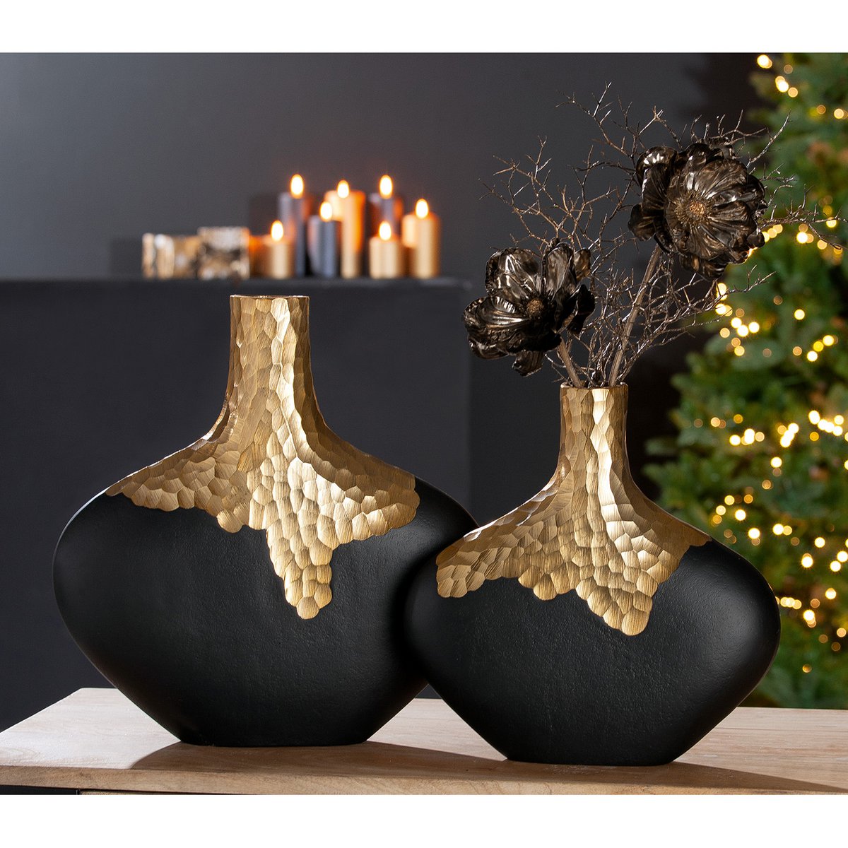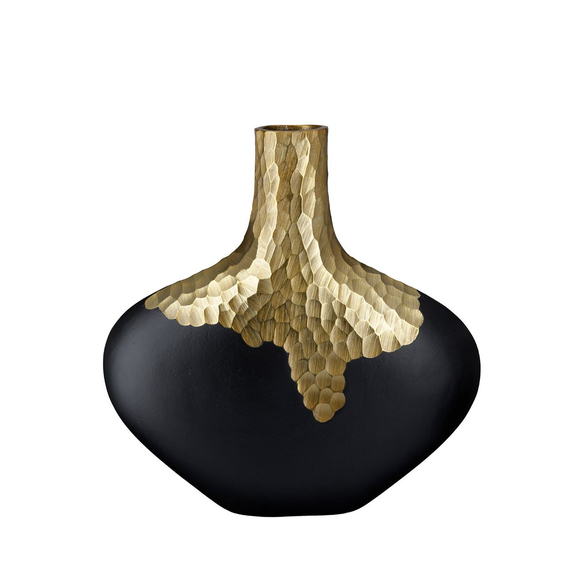 Vase Favo schwarz und goldfarben, kunstvoll hergestellt aus Aluminium, H. 30 cm, B 30 cm, T 5 cm
