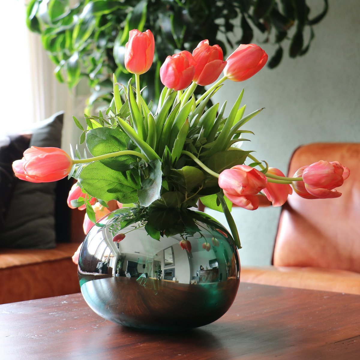 Diese Vasen haben einen wunderschönen Spiegeleffekt, so schick! Außerdem ein schöner Zusatzvorteil, schon beim Vorbeigehen kann man schnell prüfen, ob die Haare noch in Ordnung sind ;)