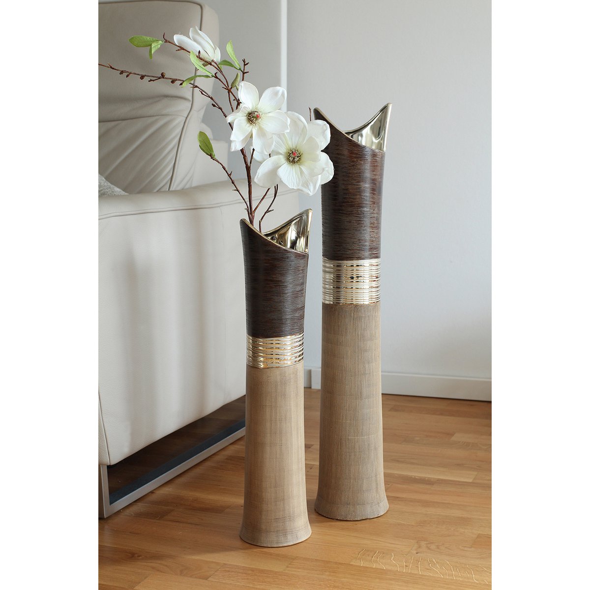 In jeder Einrichtung sind sie zu finden. Ohne sie kommen wir nicht mehr zurecht. Wohin mit dem bunten Frühlingsstrauß? Welches Gefäß für ein üppiges Bouquet zum Jahrestag? Die Rede ist von der Blumenvase schlechthin. Aber wer sagt, dass dieses Gefäß nur eine Vase für Blumen sein soll? In der heutigen Zeit ist eine Blumenvase auch ein Dekorationselement und kommt ganz ohne Beiwerk zur Geltung. Sie findet in jedem Raum ihren Auftritt und je innovativer die Form und das Design, desto aufregender gestaltet eine Vase ihr Ambiente. Lassen Sie sich insperieren und wählen dann ein Dekorationsobjekt in passender Größe und Form.