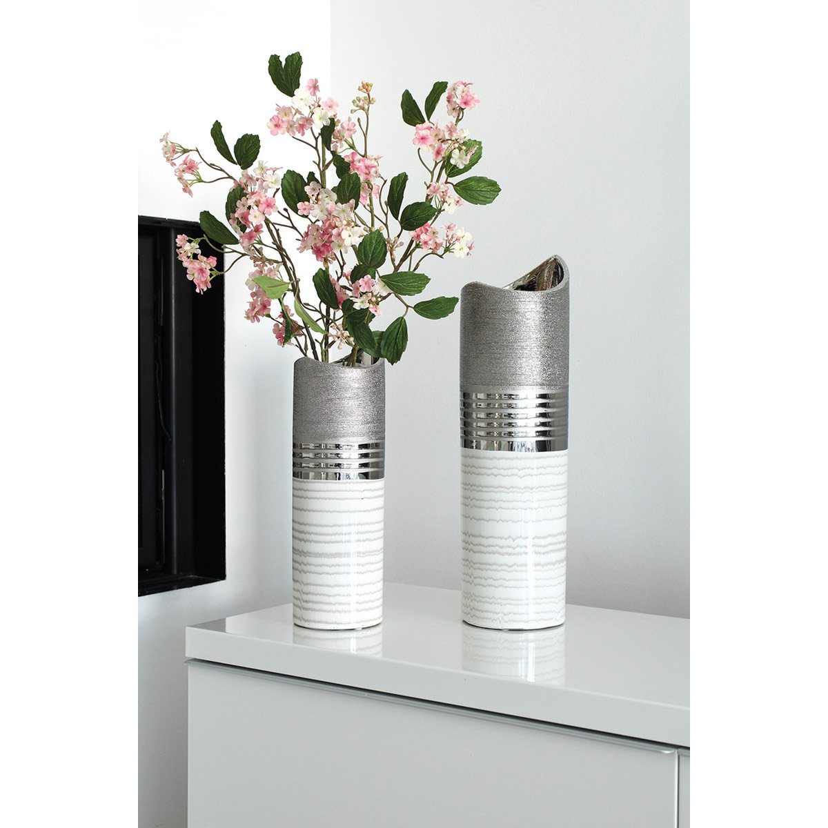 Halbmondvase "Lavena" silber/weiß/hellgrau