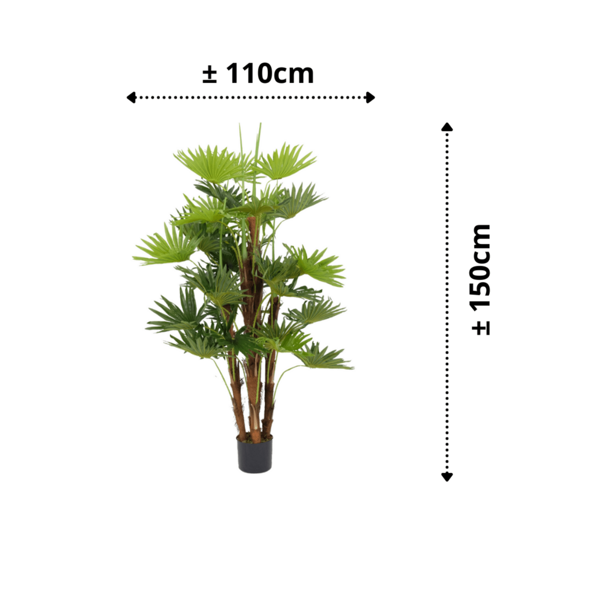 Vorteile einer künstlichen Fächerpalme ✅ Unsere Kunstpflanzen sterben nie ✅ Unsere Kunstpflanzen sind hypoallergen ✅ Sie können unsere Kunstpflanzen ganz einfach nach Ihren Wünschen formen ✅ Unsere Kunstpflanzen behalten immer die gewünschte Größe ✅ Unsere Kunstpflanzen benötigen keine Pflege und können platziert werden Überall Abmessungen der künstlichen Fächerpalme: 150 cm Höhe der künstlichen Pflanze: 150 cmDurchmesser der künstlichen Pflanze: 110 cmHöhe des Topfes: 16 cmDurchmesser des Topfes: 18 cm Sind Sie gerne in tropischer Atmosphäre? Dann ist diese fantastische künstliche Fächerpalme genau das Richtige für Sie. Diese Fächerpalme hat einen wunderschönen Naturstamm mit Palmfaser und frischgrünen Fächerblättern. Mit dieser 1,5 m großen Kunstpalme setzen Sie ein echtes Statement! Also sagen Sie mir ... Hat dieser Gewinner einen Platz in Ihrem Zuhause oder Büro verdient? Einen Blumentopf hinzufügen? Dieser künstliche Palmenfächer wird standardmäßig mit einem schwarzen „Anzuchttopf“ geliefert. Suchen Sie einen schönen Partner für Ihre künstliche Palme? Sehen Sie sich hier alle unsere Blumentöpfe an. Möchten Sie lieber jemand anderen aus der Palmen-Familie? Sie können es hier finden
