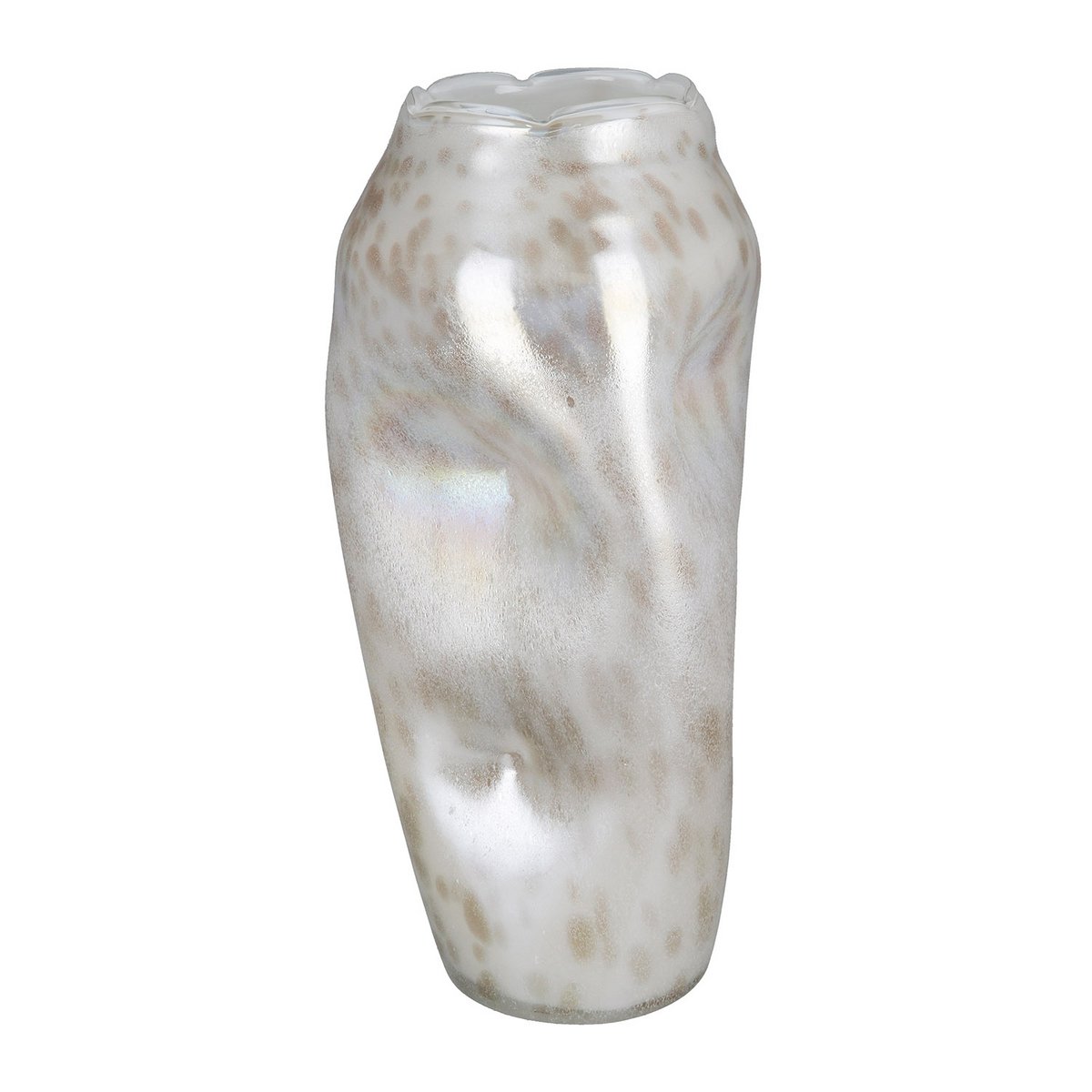 Vase Crumple creme und braun schimmernd, mit Oberflächenstruktur, kunstvoll hergestellt aus Glas, H. 37,5 cm, B 16 cm, T 16 cm