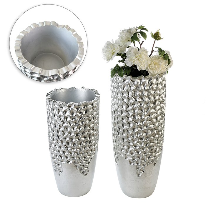 Pflanzgefäß "Carve" aus Poly/Fiberglas · silberfarben Topf: Ø 29 cm / Höhe 23 cm wasserdicht ausschließlich Indoor geeignet