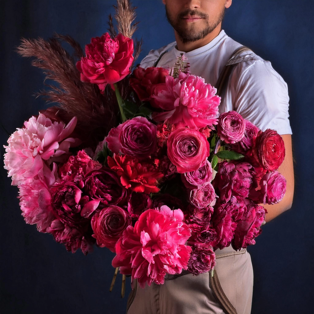 Diese prächtigen Blumensträuße vereinen kräftige Rottöne und intensive Pinknuancen und bringen damit eine lebendige Eleganz in jeden Raum. Die Kombination aus verschiedenen Blüten und Texturen schafft einen beeindruckenden, voluminösen Look, der sowohl Leidenschaft als auch Charme ausstrahlt. Perfekt für besondere Anlässe oder als luxuriöses Geschenk – diese Arrangements verleihen jedem Moment eine unvergessliche Note.