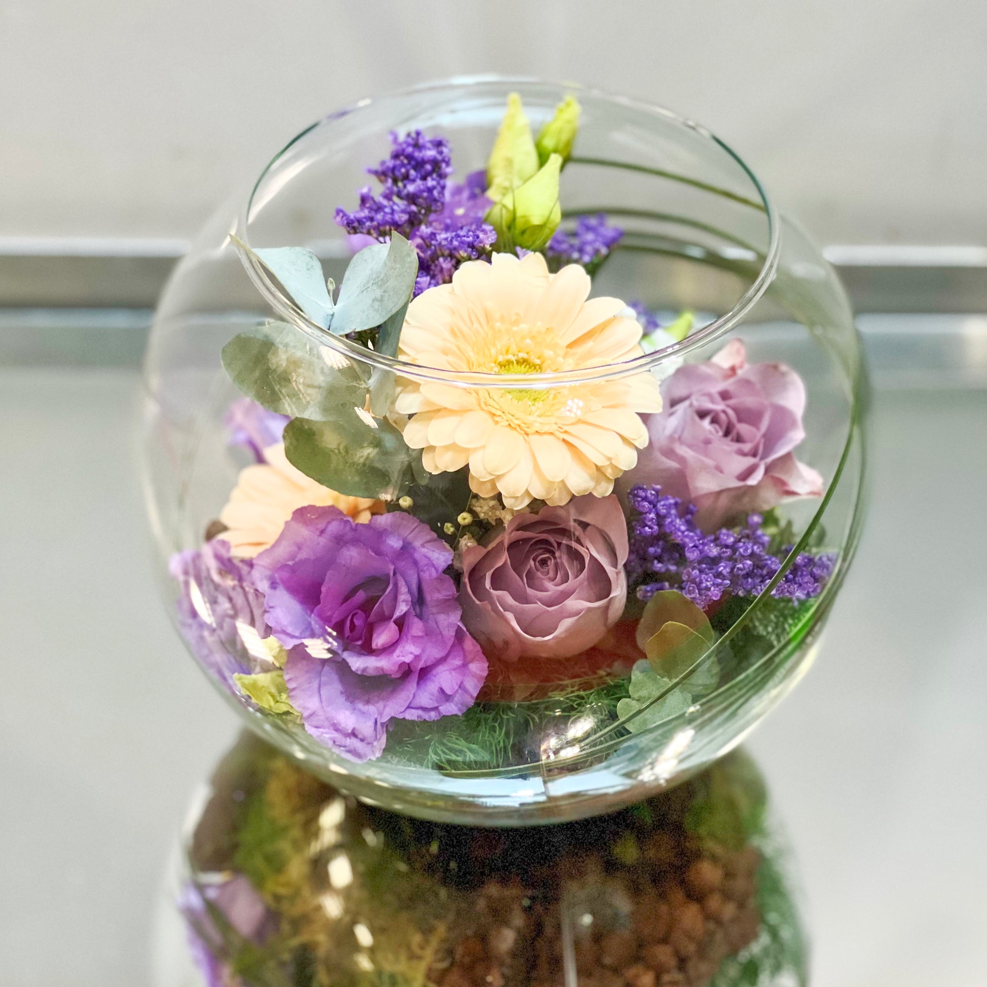 Stil: In einem glasklaren Terrarium arrangiert