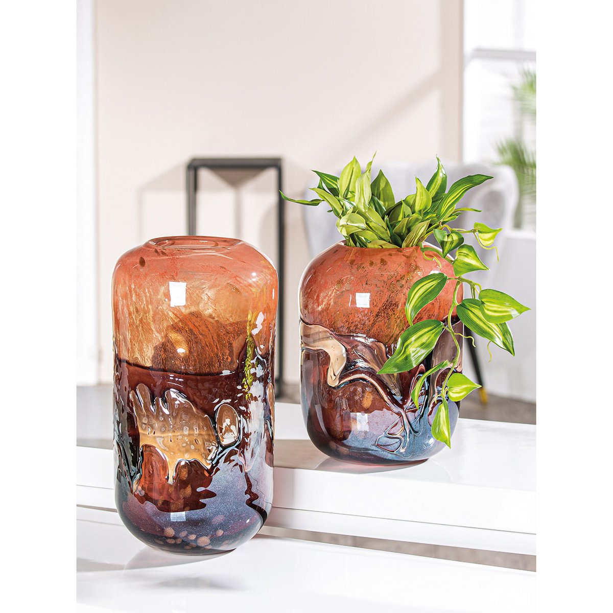 Die Apart Vase ist aus hochwertigem Glas gefertigt und besticht durch ihr einzigartiges Design. Mit einer craquelierten Oberfläche in den Farben orange und rosa ist sie ein echter Blickfang in jedem Raum. Die Vase ist durchgefärbt und wasserdicht, so dass sie sowohl als Dekoration für Blumen und Pflanzen als auch für Kerzen oder Potpourri verwendet werden kann. Mit ihren kompakten Maßen von 20x20x27 cm passt sie perfekt auf jeden Tisch oder in jedes Regal. Diese aparte Vase ist nicht nur für den Eigenbedarf ideal, sondern auch eine großartige Geschenkidee für Familie und Freunde.