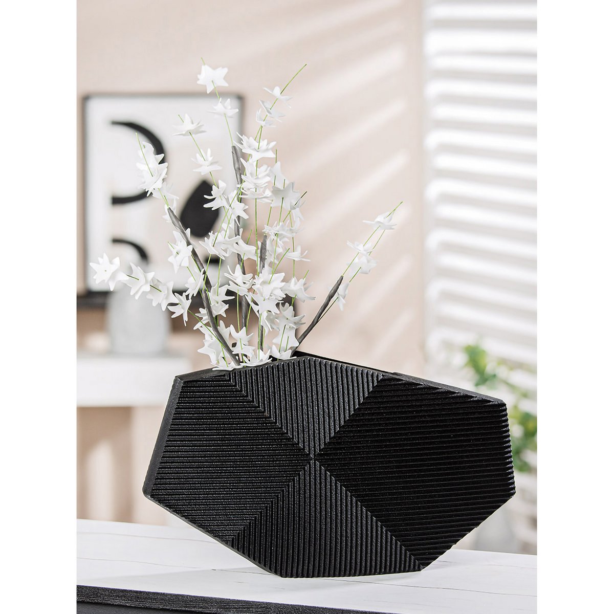 - Moderne Vase aus schwarzem Kunstharz