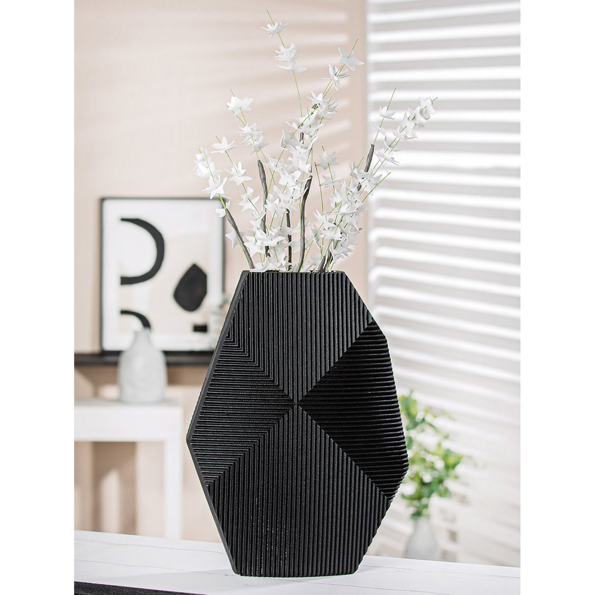 Die moderne Heptagon Vase aus Kunstharz in elegantem Schwarz ist nicht nur ein Blickfang, sondern auch äußerst praktisch. Mit ihren Maßen von 11,5 x 28 x 37,5 cm bietet sie ausreichend Platz für verschiedenste Blumenarrangements. Dank ihrer wasserdichten Eigenschaft eignet sie sich sowohl für frische Schnittblumen als auch für Trockenblumen. Die Vase ist pflegeleicht und lässt sich mühelos reinigen. Perfekt für stilvolle Dekorationen in jedem Raum!