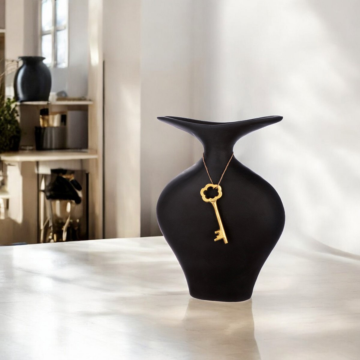 - Dekorative Vase mit Schlüsselmotiv in gold
